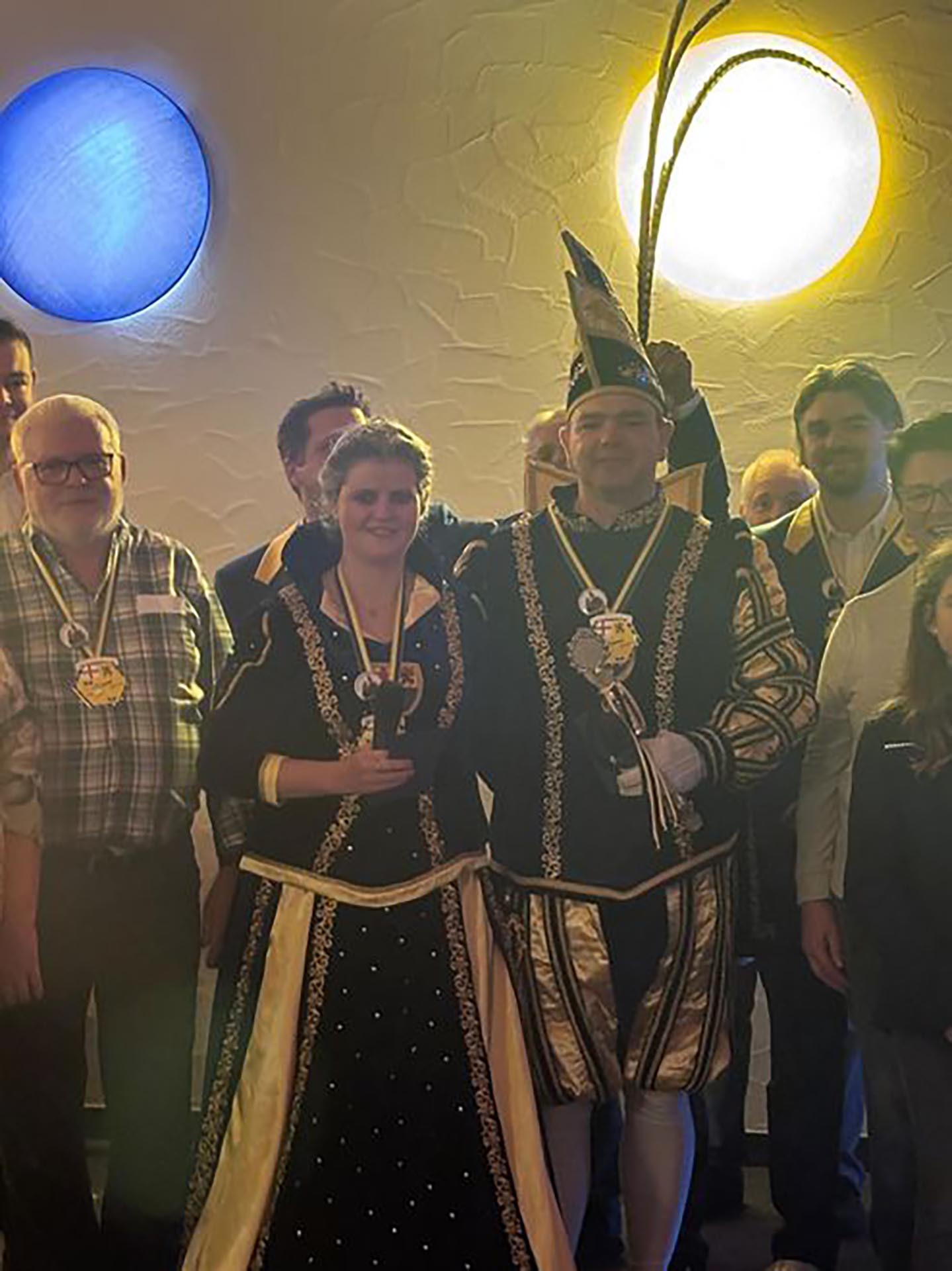 Nach dem St. Martins-Zug hatten die Seilbahnjecken in ihr neues Dorfgemeinschaftshaus zur Proklamation geladen. Gebührend gefeiert wurde dort mit befreundeten Karnevalsvereinen, Dorfbewohnern und geladener Verwandtschaft der Regenten. Beide wohnen in einer Lebens-Partnerschaft im Ort – und sind „keine Unbekannten in Sachen Karneval“.