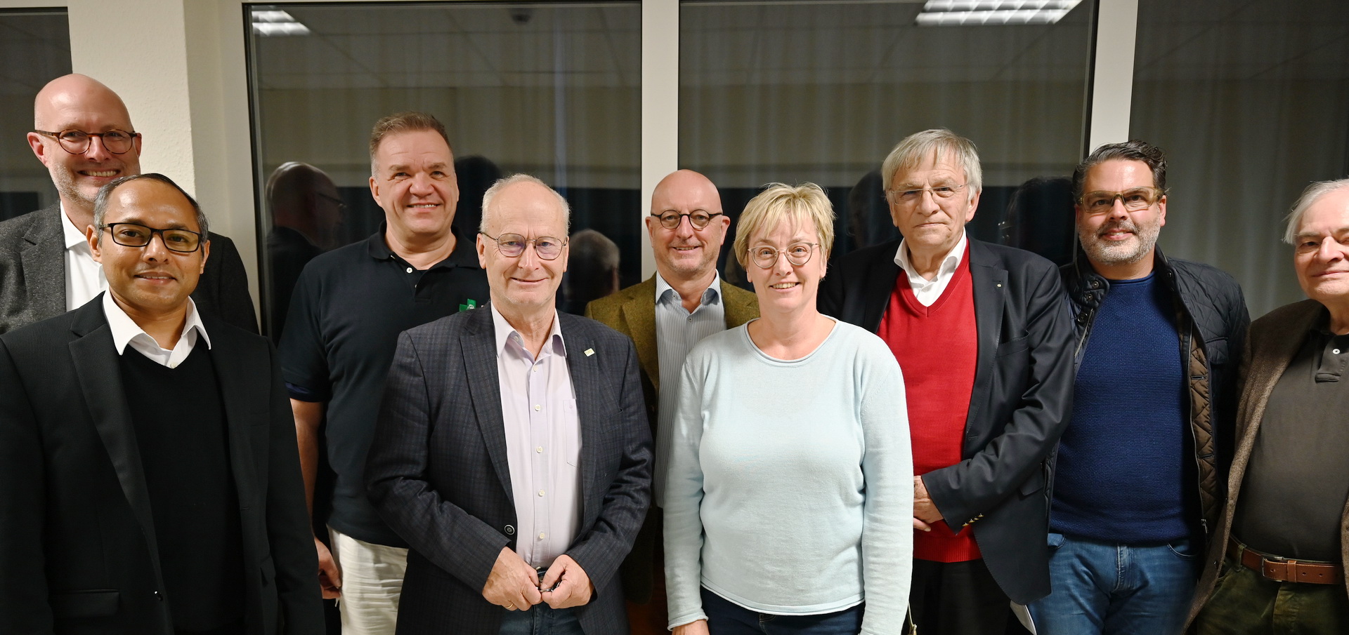 Der komplettierte Vorstand des Fördervereins Hospiz Stella Maris e.V. mit (v.l.) Matthias Scharlau, Generalsuperior Jaison Thazhathil, Dr. Thomas Göbel, dem Vorsitzenden, Altbürgermeister Dr. Hans-Peter Schick, Sozialwerks-Geschäftsführer Norbert Arnold, Miriam Arnold, dem stellvertretenden Vorsitzender Heiner Dierhoff, Guido Plützer und Wilfried Schmidt. Foto: Manfred Lang/pp/Agentur ProfiPress