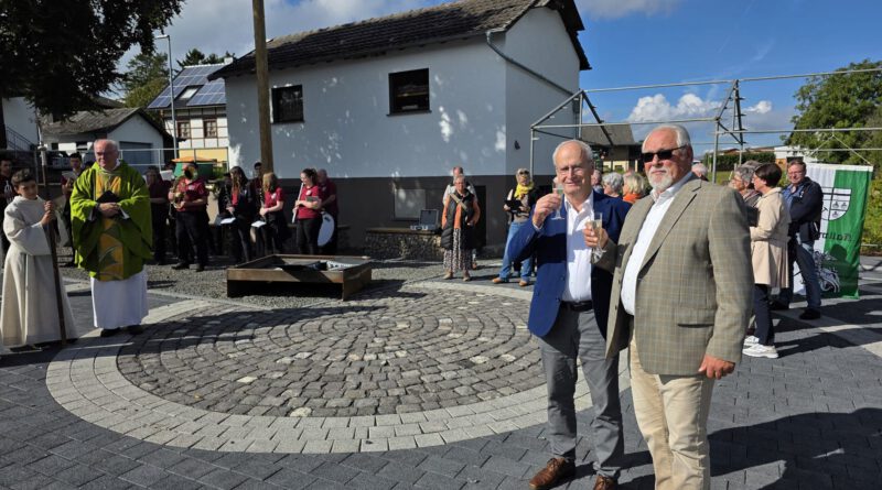 Kallmuther Dorfplatz im Rahmen der Kirmes eingeweiht –Ortbürgermeister Ohlerth und Vereinskartell happy und dankbar für „neues Herzstück“– Bürgermeister und Mitglieder des Stadtrats gratulierten zur Eröffnung Mechernich-Kallmuth – Mit einem festlichen Gottesdienst am letzten September-Wochenende hat Pfarrer Erik Pühringer den neuen Dorfplatz von Kallmuth offiziell eingesegnet. Die Einweihung war zugleich Höhepunkt der diesjährigen Kallmuther Kirmes, anlässlich der es sich Bürgermeister Dr….